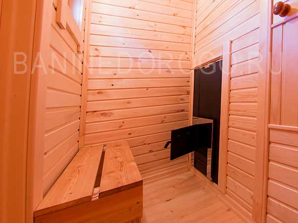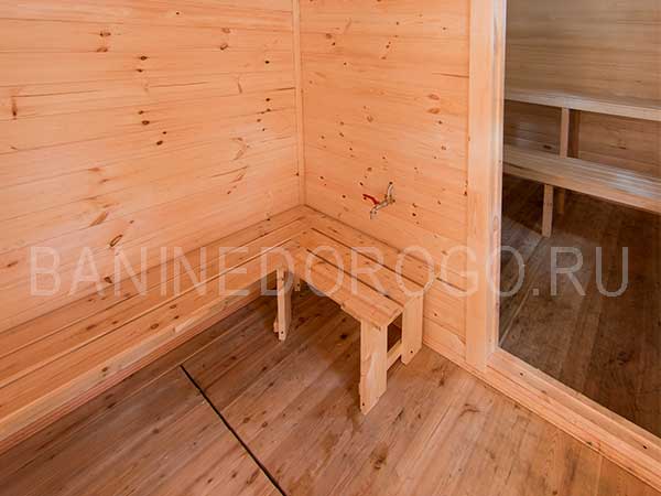 Печь, бак для горячей воды объемом 60 литров входит в стоимость бани